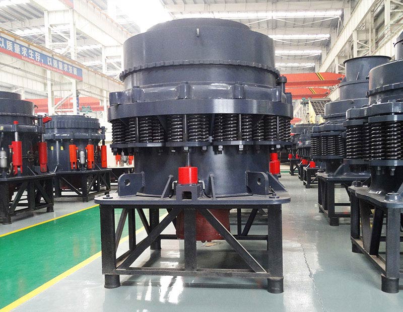 1、巖石破碎機(jī)采用底部液壓缸控制動錐起落達(dá)到調(diào)整排礦口,同時(shí)利用液壓系統(tǒng)中蓄能器起過鐵保護(hù),省略了原彈簧圓錐破碎機(jī)的調(diào)整環(huán)、支承圈部及彈簧部,大大簡化了設(shè)備的結(jié)構(gòu),結(jié)構(gòu)簡單、運(yùn)行可靠。