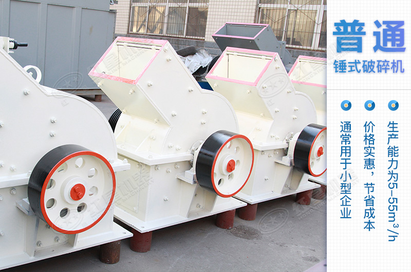 普通版的錘式破碎機是比較早的錘式破碎機,它本身的生產(chǎn)能力為5-55m3/h,主要都是偏小型的破碎機,價格總體來說也比較優(yōu)惠些,它通常用于小型企業(yè)的使用,它主要的型號配置如下: