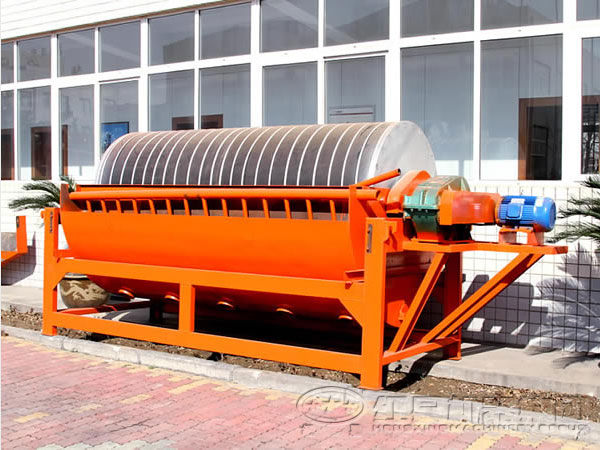 通過(guò)鏟車或者挖砂泵將海砂給入料倉(cāng)中,經(jīng)皮帶輸送機(jī)運(yùn)送至滾筒篩進(jìn)行篩分,滾筒篩接有沖水管,廢料篩出,符合粒度的海沙經(jīng)滾筒篩進(jìn)入兩臺(tái)濕式磁選機(jī)分別進(jìn)行粗選和精選作業(yè),最后獲得鐵精粉。海沙選鐵設(shè)備整套生產(chǎn)工藝原理較為簡(jiǎn)單,處理量也較大,客戶可在短時(shí)間內(nèi)掌握操作要點(diǎn)。