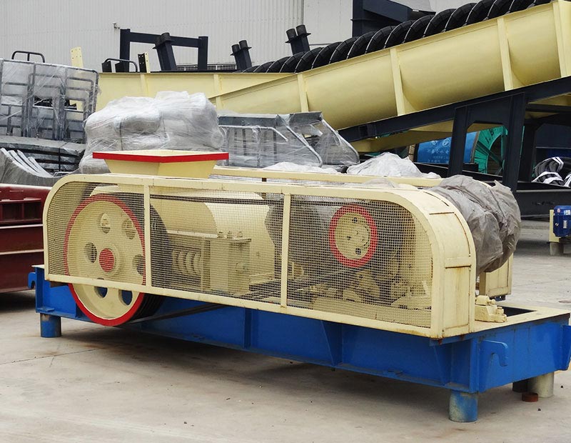 雙輥破碎機是通過兩個輥子分別用兩個電動機帶動,并作相向轉(zhuǎn)動。將礦石經(jīng)給料口落入兩輥子之間,進行擠壓破碎,由于雙輥破碎機的輥子是光面的,因此不僅具有壓碎的作用,同時還具有研磨的功能。同時受到輥軸的擠軋和剪磨,物料即開始碎裂,碎裂后的小顆粒沿著輥子旋轉(zhuǎn)的切線,通過兩輥軸的間隙,向機器下方拋出,超過間隙的大顆粒物料繼續(xù)被破碎成小顆粒排出,不會出現(xiàn)過粉碎現(xiàn)象。
